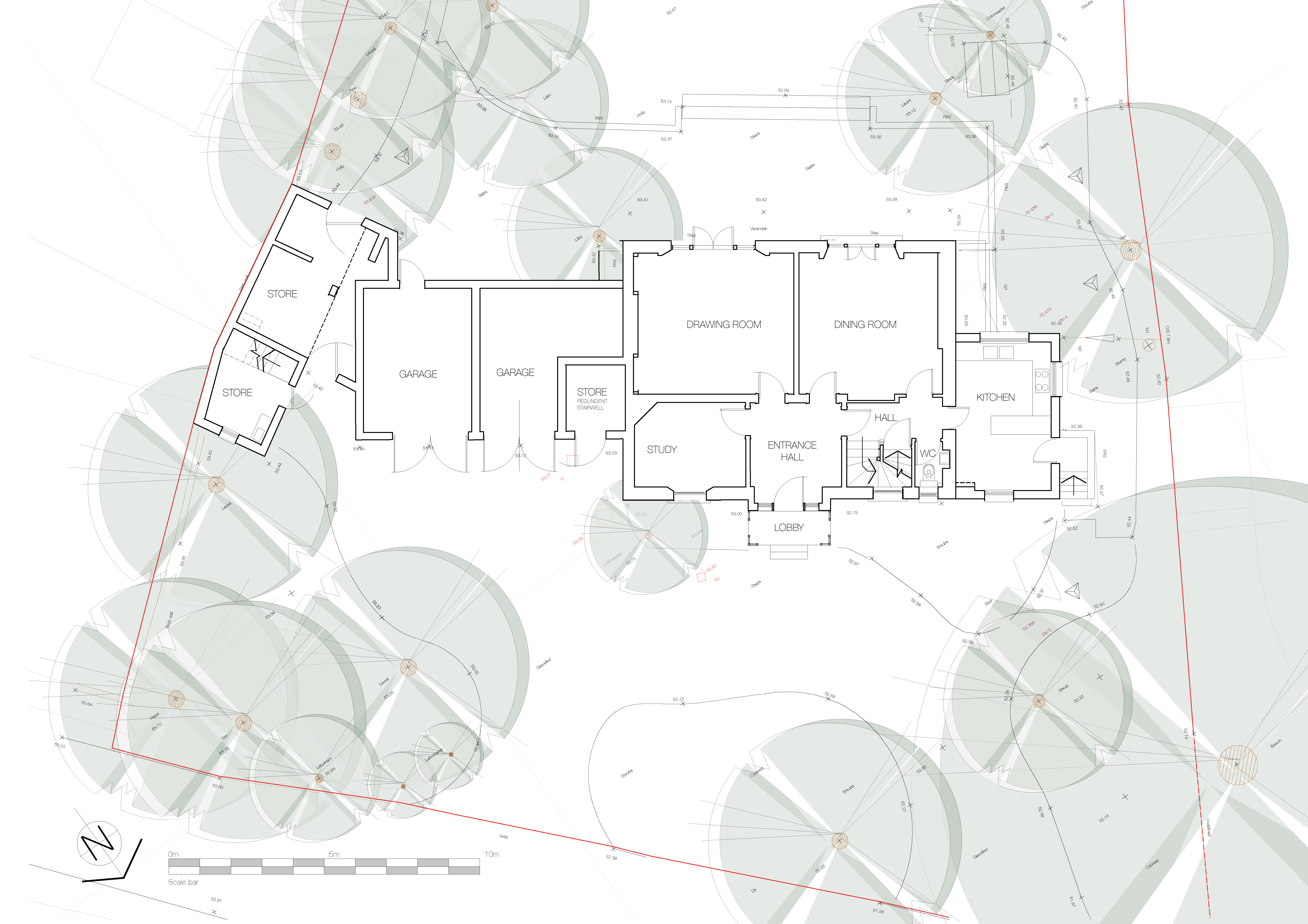 We typically survey the entire property and its context—not just the areas affected by proposed works. This strategic approach allows us to consider the property as a whole and often reveals alternative solutions and opportunities you might not have initially considered.